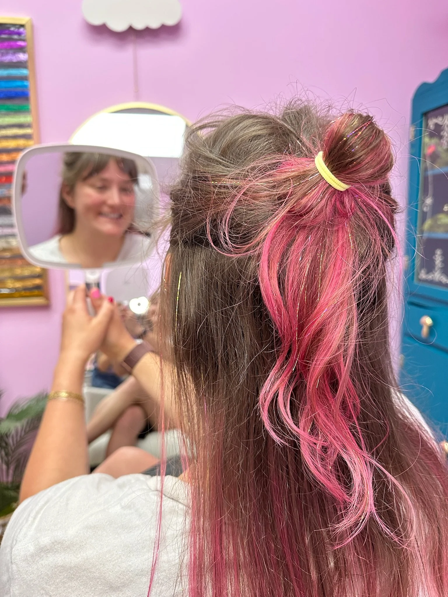 Schedule one appointment per person in your party who intends to get fairy hair. Extra guests without an appointment will be added to the walk-in list.